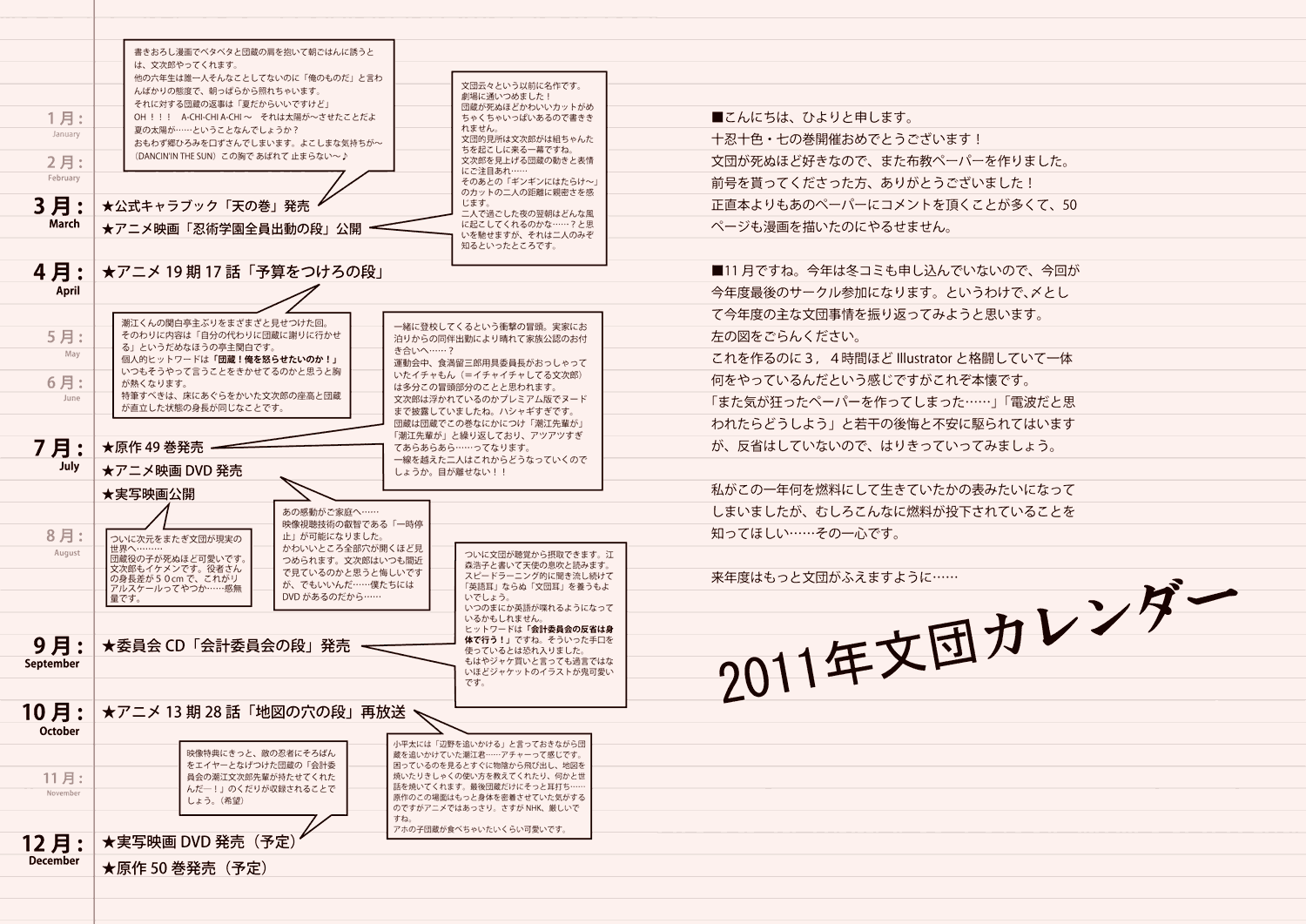 今年最後のイベント参加なので、カレンダー形式で2011年の文団を振り返って見ました。